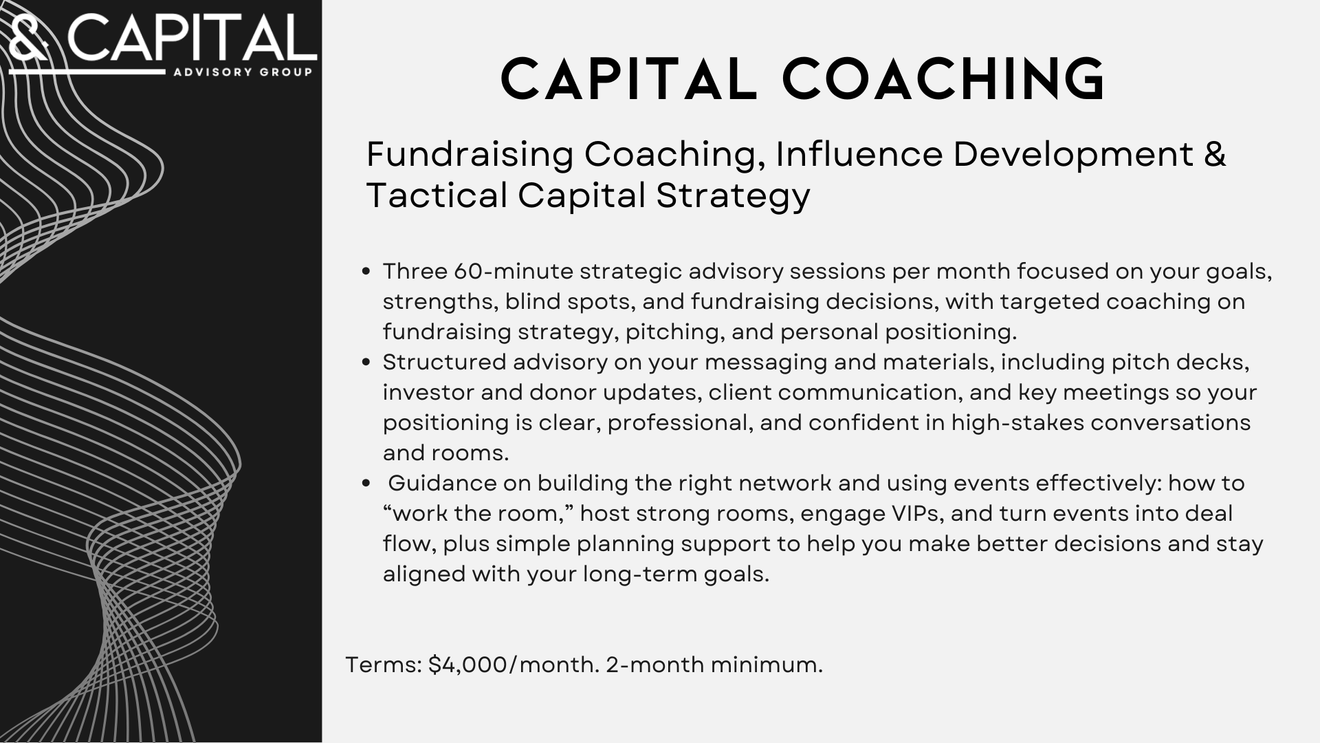 Backed by a track record of facilitating thousands of strategic connections and contributing to over $600M in capital raises, this program blends influence strategy, leadership development, and tactical execution into a single operating system.